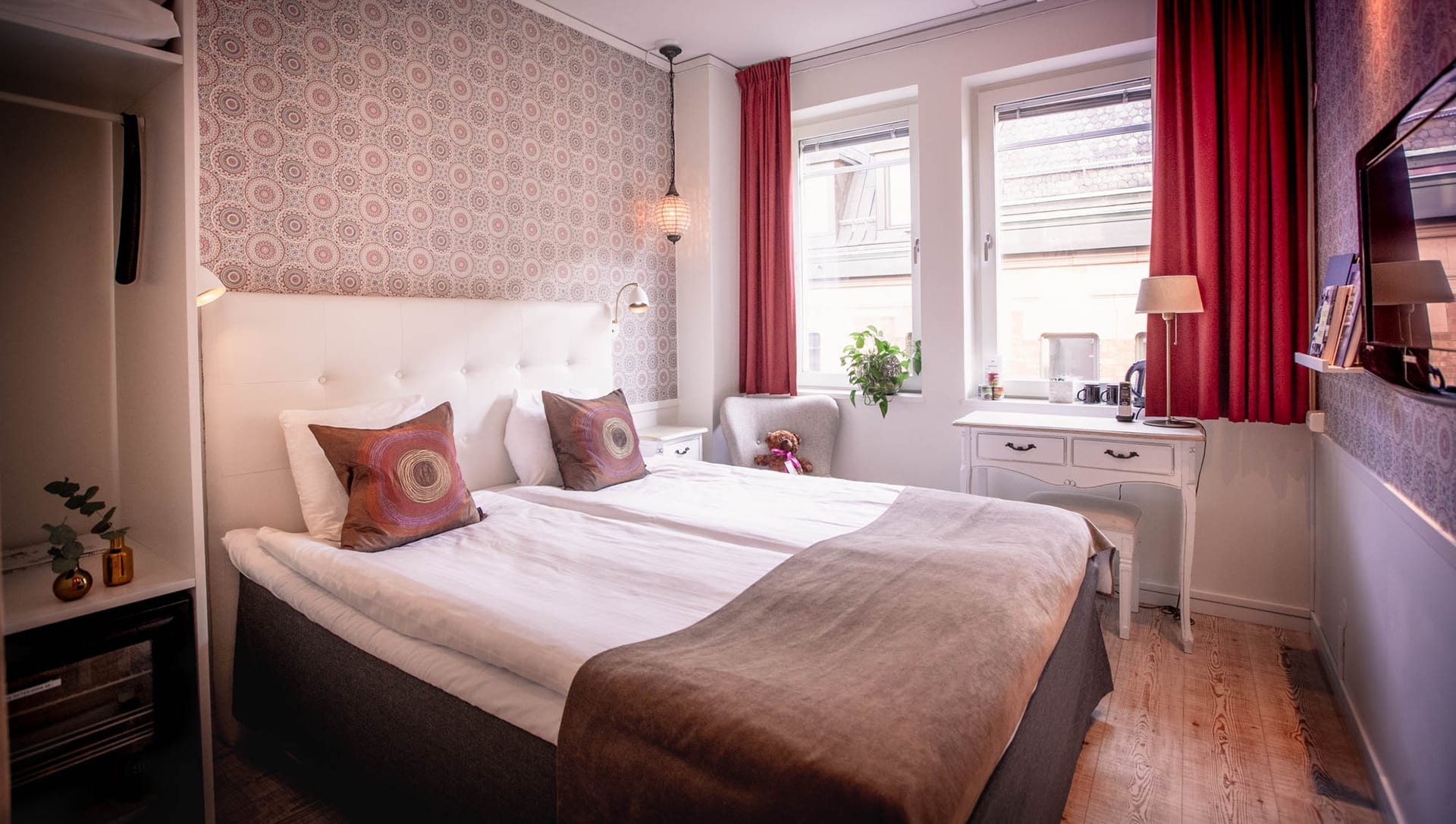 They are about 16 square metres in area. The rooms look out onto a courtyard or quiet street. Some rooms also allow dogs. Please contact our booking service direct for more information and availability. Book these rooms direct on +46 (0)8-506 214 00.