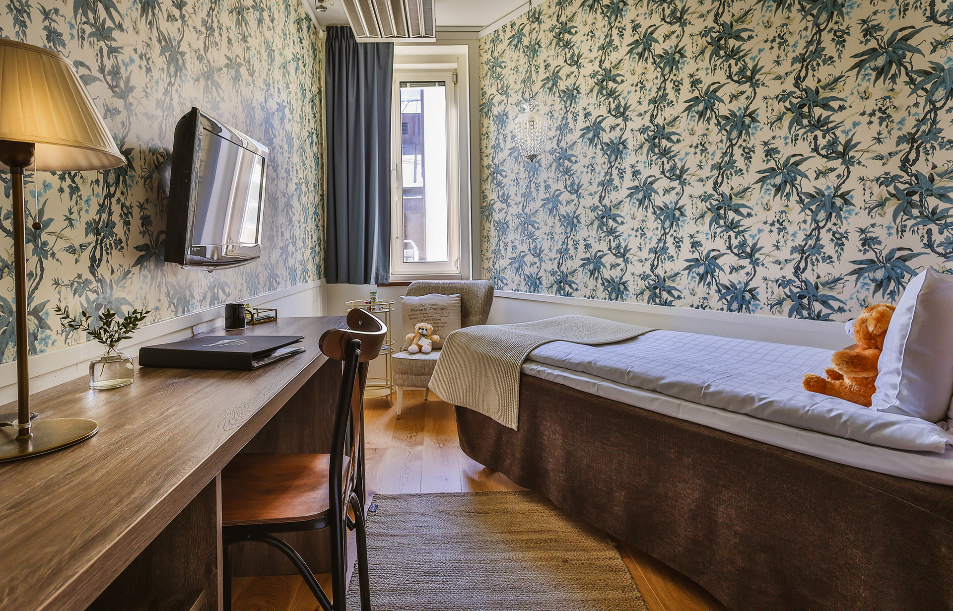 The rooms look out onto a courtyard, and they all have a comfy 90 cm wide bed. These rooms can be booked in combination with a Twin Room. We open the door between the hotel rooms, much appreciated when you would like to stay close together, but still apart.